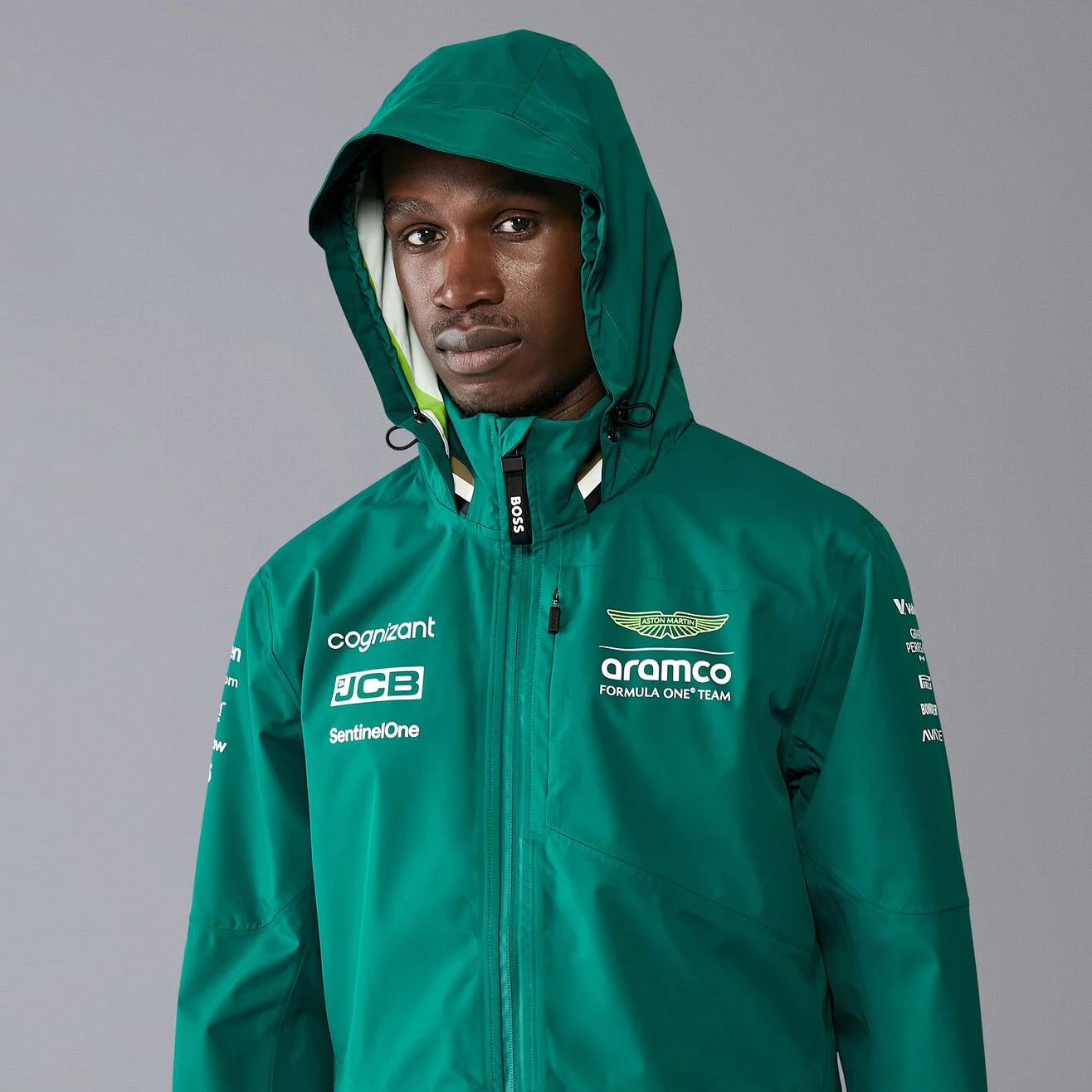 Jacheta Team Replica de performanță supremă, inspirată de jacheta care protejează echipa și piloții de intemperii pe tot parcursul sezonului de Formula 1® 2024. Fabricată din nailon hidrofug 5k/5k, jacheta te menține uscat și protejat de vânt, indiferent de condiții. Toate insignele oficiale ale echipei includ detalii tehnice, inclusiv fermoare cu sigla BOSS și glugă detașabilă.