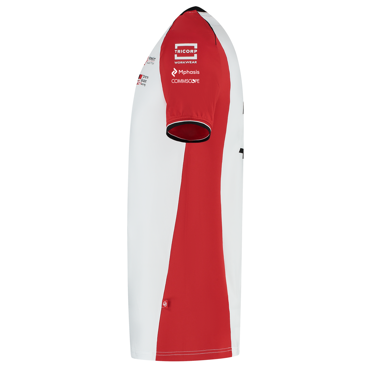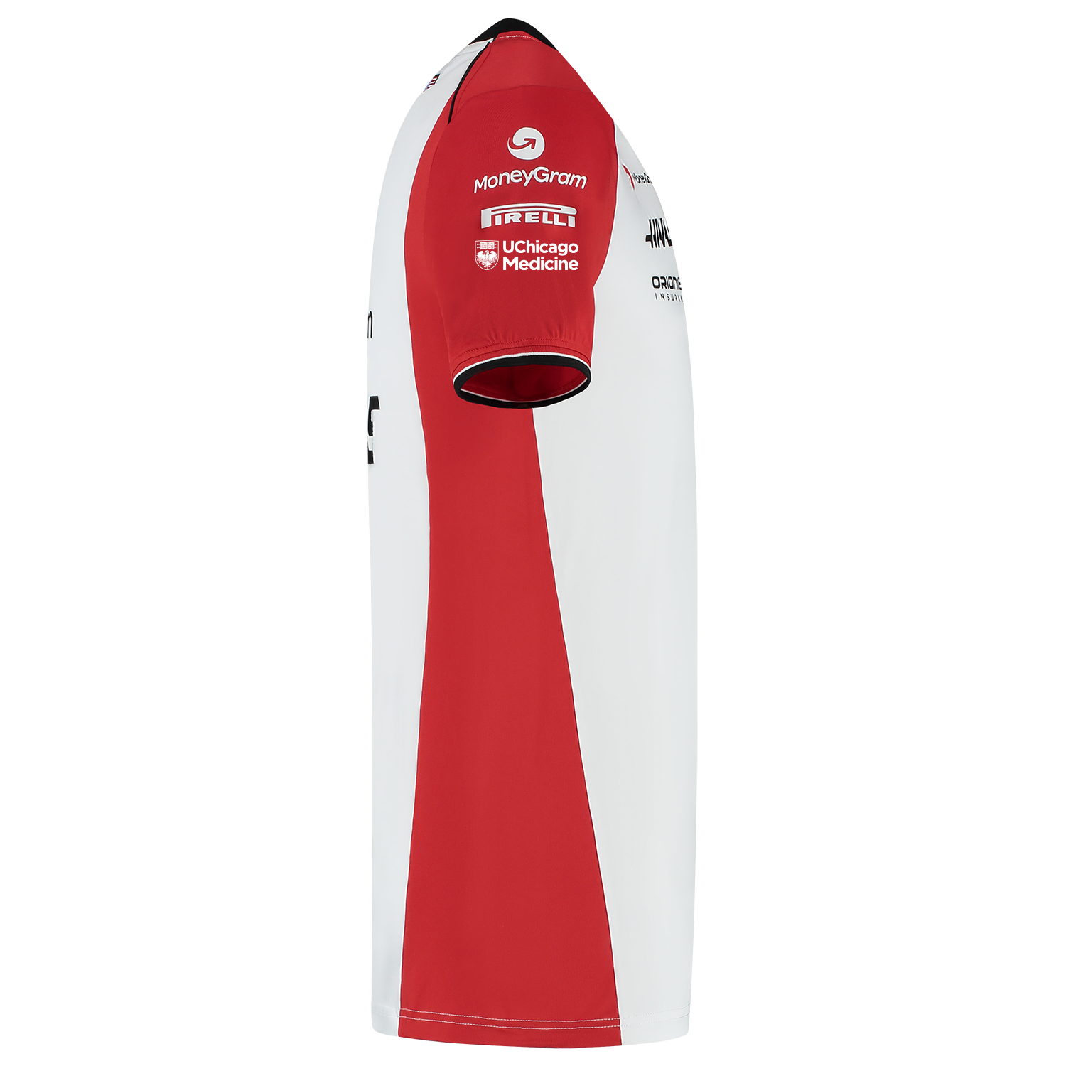 Arată-ți susținerea cu tricoul MoneyGram Haas F1 Fitted. Acest articol oficial de merchandising face parte din colecția de îmbrăcăminte MoneyGram Haas F1 și este o replică a tricourilor piloților purtate de Esteban Ocon și Ollie Bearman în sezonul 2025. Tricoul mulat este confortabil de purtat datorită elastanului încorporat în material și prezintă sigla oficială a echipei și siglele sponsorilor pentru 2025, astfel încât să arăți impecabil.