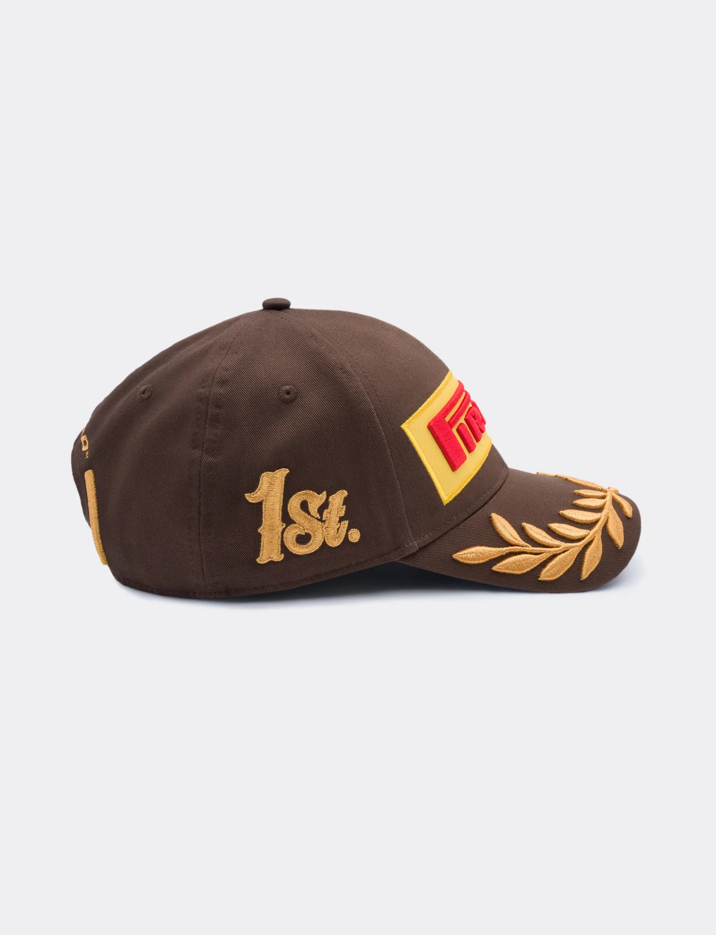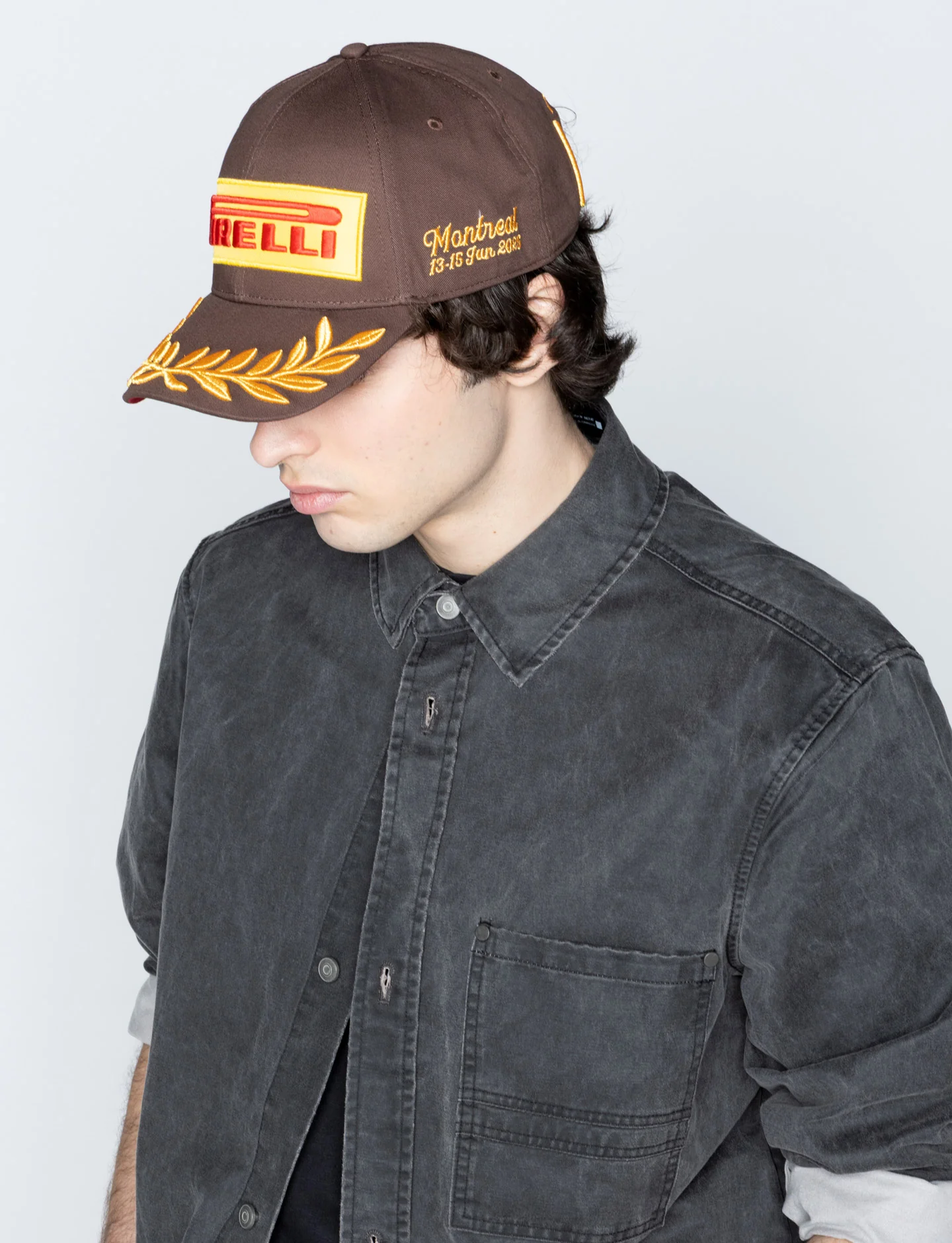 Șapca Pirelli Podium - Ediție Specială Canada canalizează energia brută, pământie a Circuitului Gilles Villeneuve® cu o bază maro bogată - un omagiu adus naturii aspre a curselor pe un circuit insular înconjurat de apă și pădure. Sclipiri de broderie aurie ridică aspectul cu un prestigiu demn de podium, în timp ce tija inferioară roșu aprins adaugă un strop de energie - un omagiu inconfundabil adus mândriei canadiene. Steagul cu frunză de arțar de pe închiderea snapback pecetluiește povestea, înrădăcinând această șapcă în identitatea națională și moștenirea curselor. Robustă, rafinată și gata pentru orice - exact ca Montrealul.
