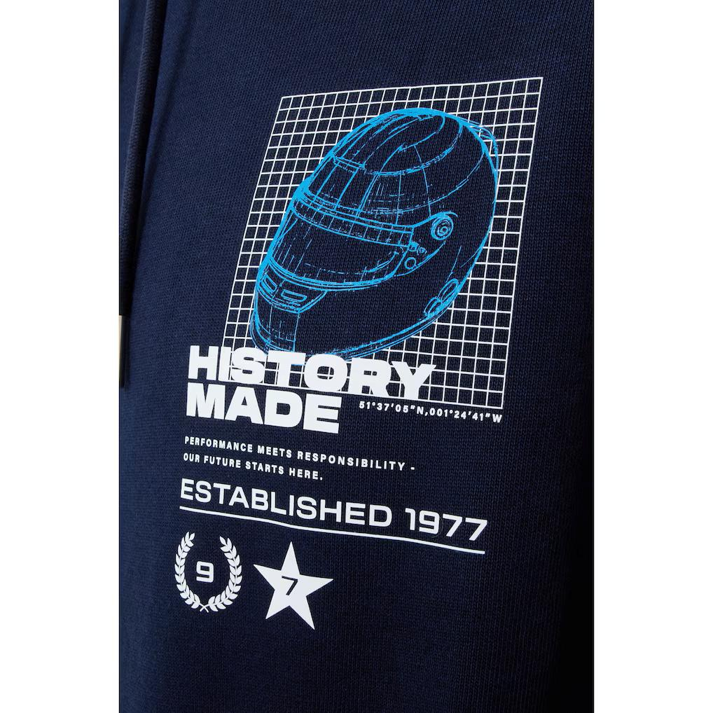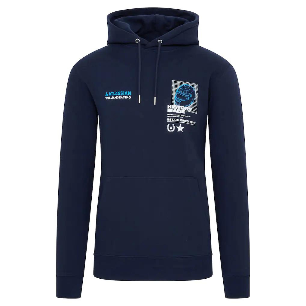 Sărbătorește ilustrul patrimoniu al Atlassian Williams Racing cu declarații îndrăznețe și pline de trofee care onorează vitrina lor de trofee invidiată. Colaborarea Reflo cu Williams aduce pasiunea și energia echipei împreună cu un design elegant și performanță ridicată. Această hanorac prezintă un design de înaltă calitate în formă de grilă pentru cască pe spate și piept, împreună cu brandingul Williams Racing și Reflo.