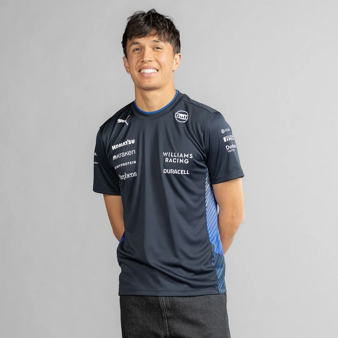 Tricou oficial al echipei Atlassian Williams Racing pentru bărbați din 2025. Prezintă imprimeul lateral Camo al echipei, așa cum se vede în întreaga colecție Team 2025, alături de brandingul oficial al echipei și de brandingul sponsorilor selectați.